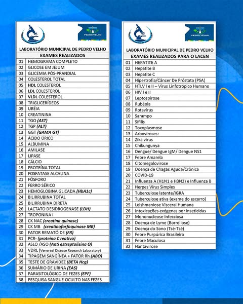 Nosso compromisso é facilitar a vida dos pedrovelhenses. Hoje, o laboratório municipal oferece uma variedade de exames que antes não estavam disponíveis, garantindo atendimento de qualidade e acessível para nossa população.